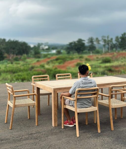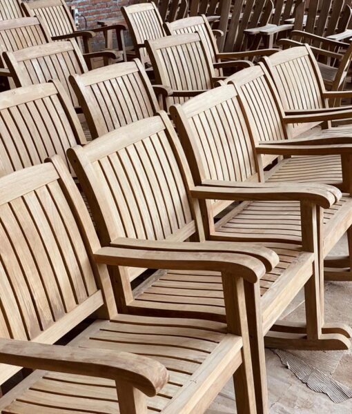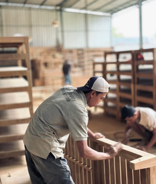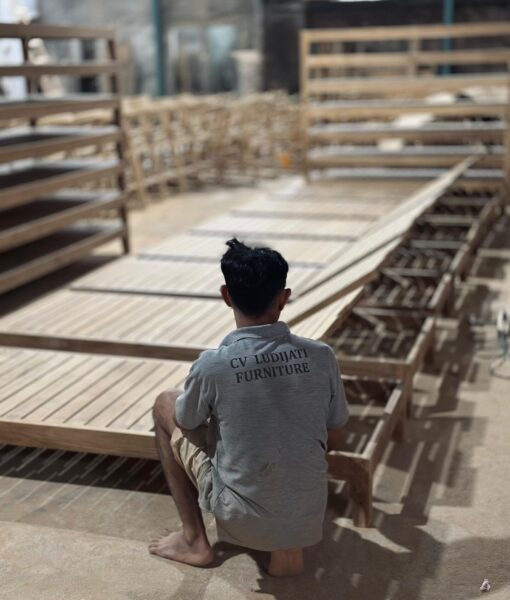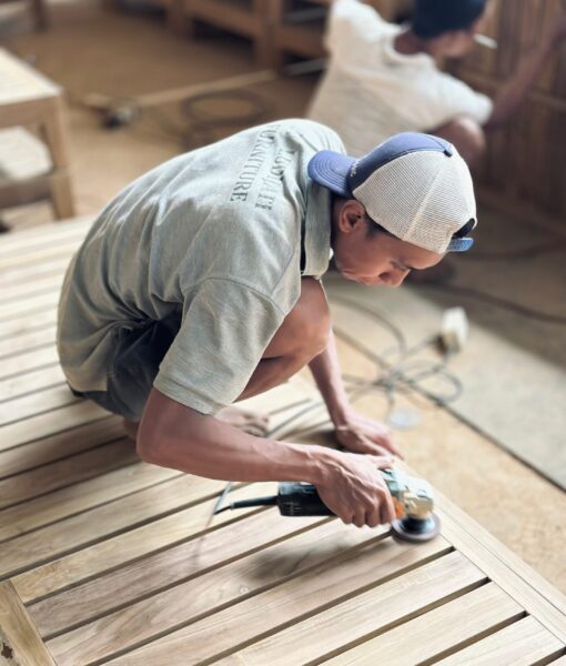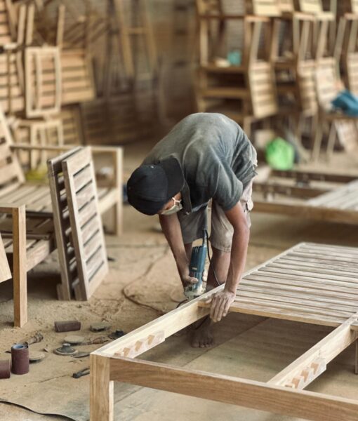 Our teak patio furniture is produced with quality teak wood that we handpick from legal government teak plantations and old houses for reclaimed teak items. Teak wood is carefully selected and then dried in a kiln dry chamber and manufactured using the right machines.