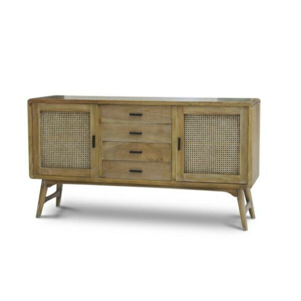 TEAK WOOD TV BUFET CABINET WITH RATTAN